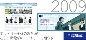 2008年より企画制作とオルガノ様で採用サイトを構築するようになってから、年々エントリーシート提出者は増加。
